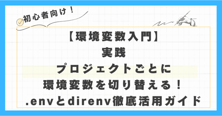 開発者の皆さん、環境変数の管理に頭を悩ませていませんか? 複数のプロジェクトを掛け持ちしていると、それぞれのプロジェクトで異なるAPIキー、データベース接続情報、あるいは開発環境固有の設定が必要になりますよね。 そんな時 … 続きを読む 【環境変数入門】実践:プロジェクトごとに環境変数を切り替える!.envとdirenv徹底活用ガイド