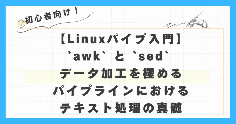 Linuxコマンドラインの世界へようこそ!データ処理と自動化の現場で、あなたは「もっとスマートに、もっと効率的に」という壁にぶつかったことはありませんか? 大量のログファイルから特定の情報を抽出し、整形し、レポートを作成 … 続きを読む 【Linuxパイプ入門】awk と sed でデータ加工を極める:パイプラインにおけるテキスト処理の真髄