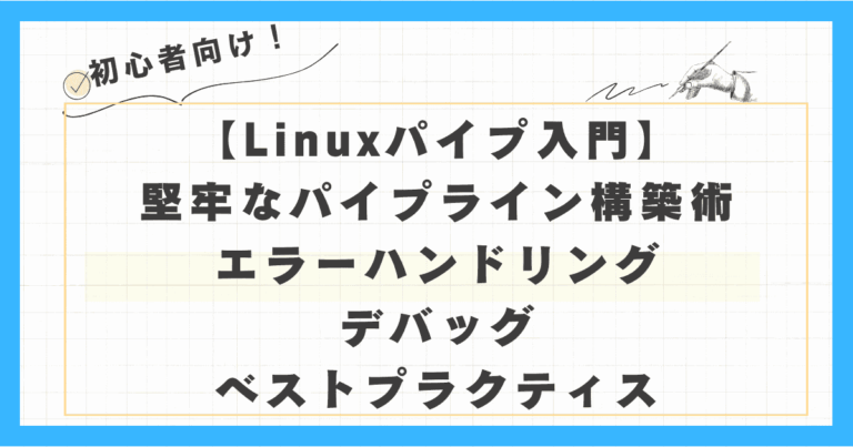 なぜパイプラインのエラーハンドリングが重要なのか 「またシェルスクリプトが途中で止まってる…」「エラーが出たのに、どこで何が起きたか分からない!」 Linuxコマンドラインを使いこなすエンジニアなら、一度は経験したことが … 続きを読む 【Linuxパイプ入門】堅牢なパイプライン構築術:エラーハンドリングとデバッグのベストプラクティス