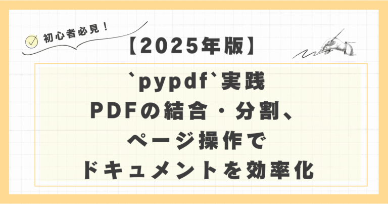 【2025年版】pypdf実践:PDFの結合・分割、ページ操作でドキュメントを効率化する