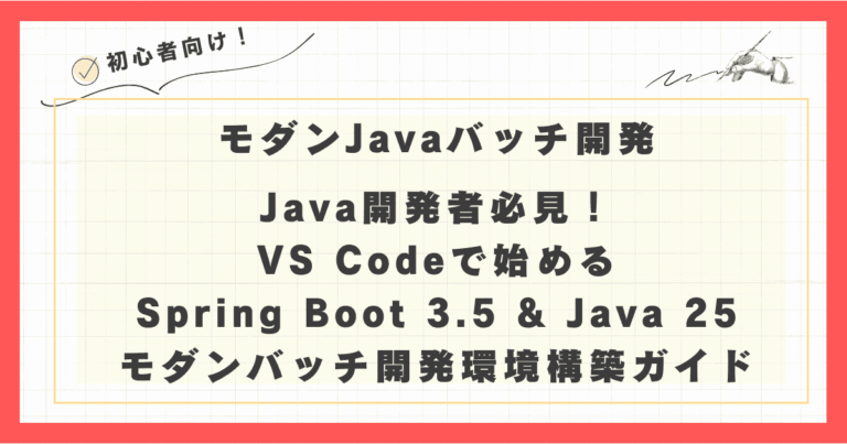 「バッチ処理」と聞くと、レガシーなシステムや複雑な設定を想像するかもしれません。しかし、モダンな開発フレームワークであるSpring Bootと、革新を続けるJava 25が手を組むことで、バッチ開発はより直感的で、かつ … 続きを読む モダンJavaバッチ開発:Java開発者必見!VS Codeで始めるSpring Boot 3.5 & Java 25モダンバッチ開発環境構築ガイド