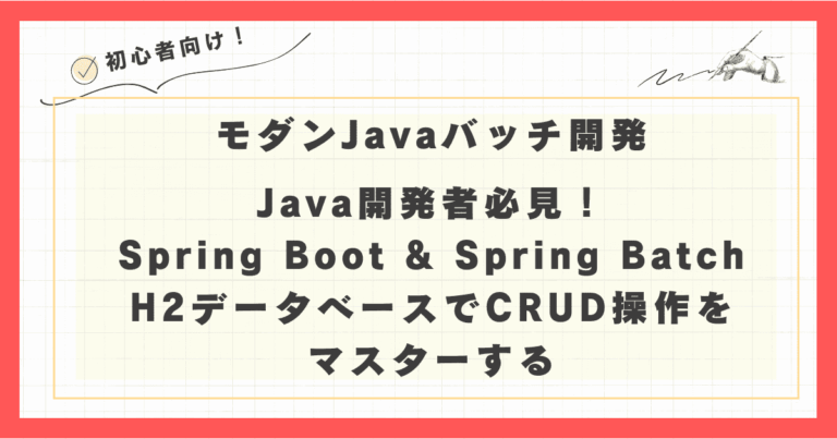 現代のビジネスアプリケーションにおいて、大量のデータを効率的かつ確実に処理するバッチ処理は不可欠です。 特にJavaエコシステムでは、Spring BootとSpring Batchの組み合わせが、堅牢なバッチアプリケー … 続きを読む モダンJavaバッチ開発:Spring Boot & Spring BatchでH2データベースCRUD操作をマスターする完全サンプル