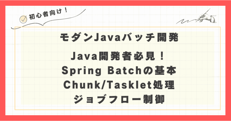 Spring Batchの高度な機能:複雑な処理をシンプルに 「Spring Batchって何から始めればいいの?」「Chunk処理とTasklet、どう使い分けるの?」「複雑なジョブの流れをどうやって制御するんだろう? … 続きを読む モダンJavaバッチ開発:Spring Batchの基本:Chunk/Tasklet処理とジョブフロー制御