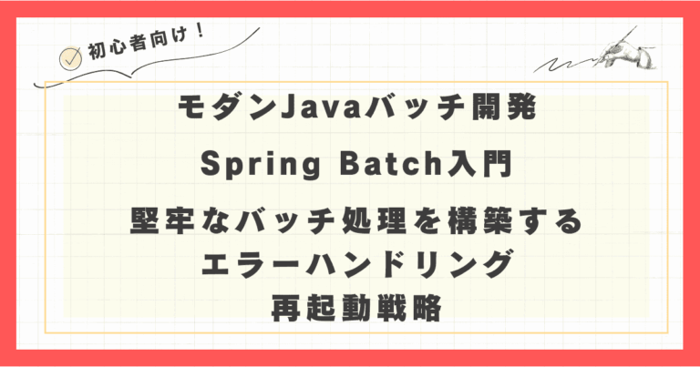 堅牢なバッチ処理のための設計パターン 「バッチ処理が途中で失敗したらどうする?」「エラーが発生しても処理を止めずに続けたい」「再実行したときに、最初からやり直すのは避けたい」 バッチ処理を運用する上で、エラーへの対応と再 … 続きを読む モダンJavaバッチ開発:Spring Batchで堅牢なバッチ処理を構築する:エラーハンドリングと再起動戦略