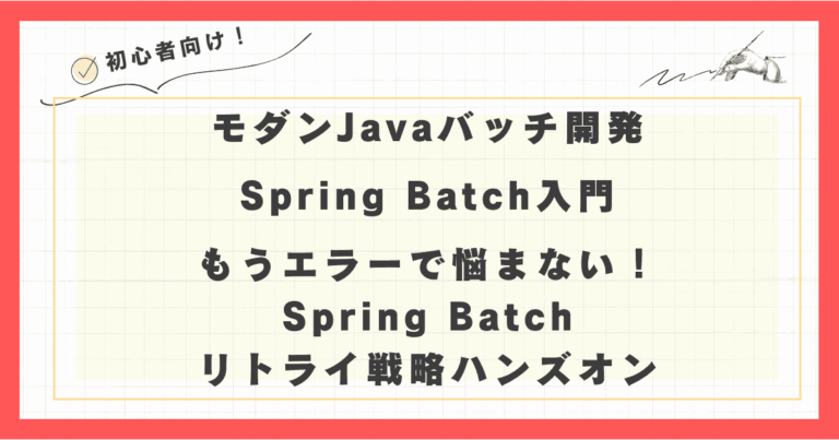 なぜSpring Batchのリトライ戦略が必要なのか? Spring Batchでバッチ処理を開発していると、以下のような課題に直面したことはありませんか? そんな悩みを解決するのが、Spring Batchのリトライ … 続きを読む モダンJavaバッチ開発:もうエラーで悩まない!Spring Batchリトライ戦略ハンズオン