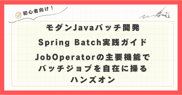 はじめに Spring Batchは強力なバッチ処理フレームワークですが、作ったジョブを「どのように動かし、管理するか」は多くの開発者が悩むポイントです。 特に、Webアプリケーションの管理画面からジョブを起動したり、長 … 続きを読む モダンJavaバッチ開発:JobOperatorの主要機能でバッチジョブを自在に操るハンズオン