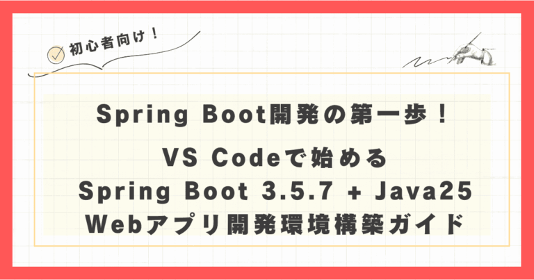 「開発環境の構築って、なんでこんなに大変なんだろう…」 そう感じたことはありませんか? 特に、新しい技術スタックに挑戦する際、環境構築の段階でつまずき、モチベーションが下がってしまう経験は、多くの開発者にとって「あるある … 続きを読む Spring Boot開発の第一歩!VS Codeで始めるSpring Boot 3.5.7 + Java25 Webアプリ開発環境構築ガイド