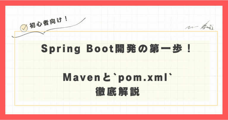 Spring Boot開発の必須知識「Mavenとpom.xml」 Spring Boot開発を始めたばかりのジュニアエンジニアの皆さん、こんにちは!「Spring Bootの設定、何から手をつければいいか分からない…」 … 続きを読む Spring Boot開発の第一歩!Mavenとpom.xmlを徹底解説